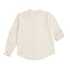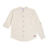 Camisa manga larga 👕, en tejido plano tipo lino 🌿, cuello nerú ✨, con perilla, puños y bolsillo en frente 🧵, tallas 4-6-8-10-12-14-16 📏, color marfil 🤍, composición 94% rayón – 6% lino 🧶 💙